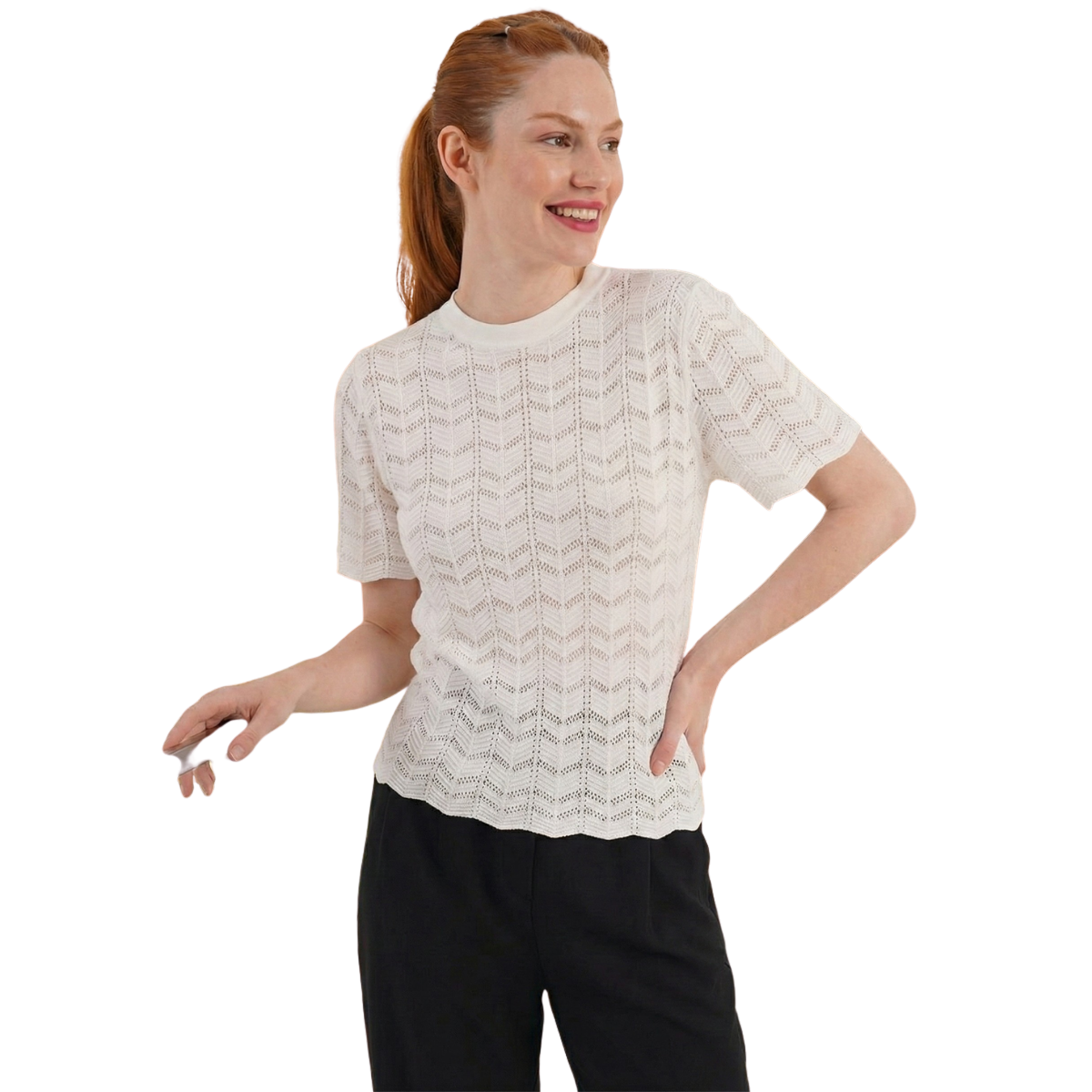 Delikli Kısa Kol Bluz - M / Beyaz